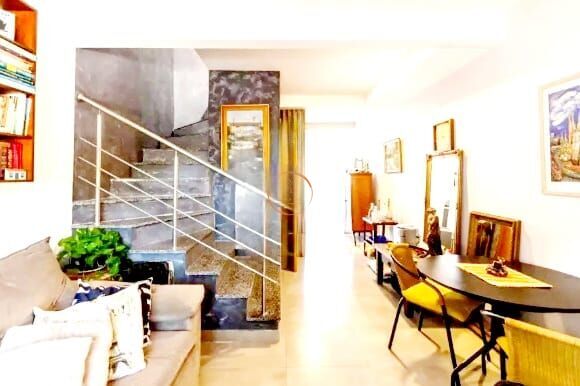 No pavimento térreo você conta com living para 2 ambientes, lavabo, cozinha, área de serviço e pátio com churrasqueira para aproveitar bons momentos 🍖✨
